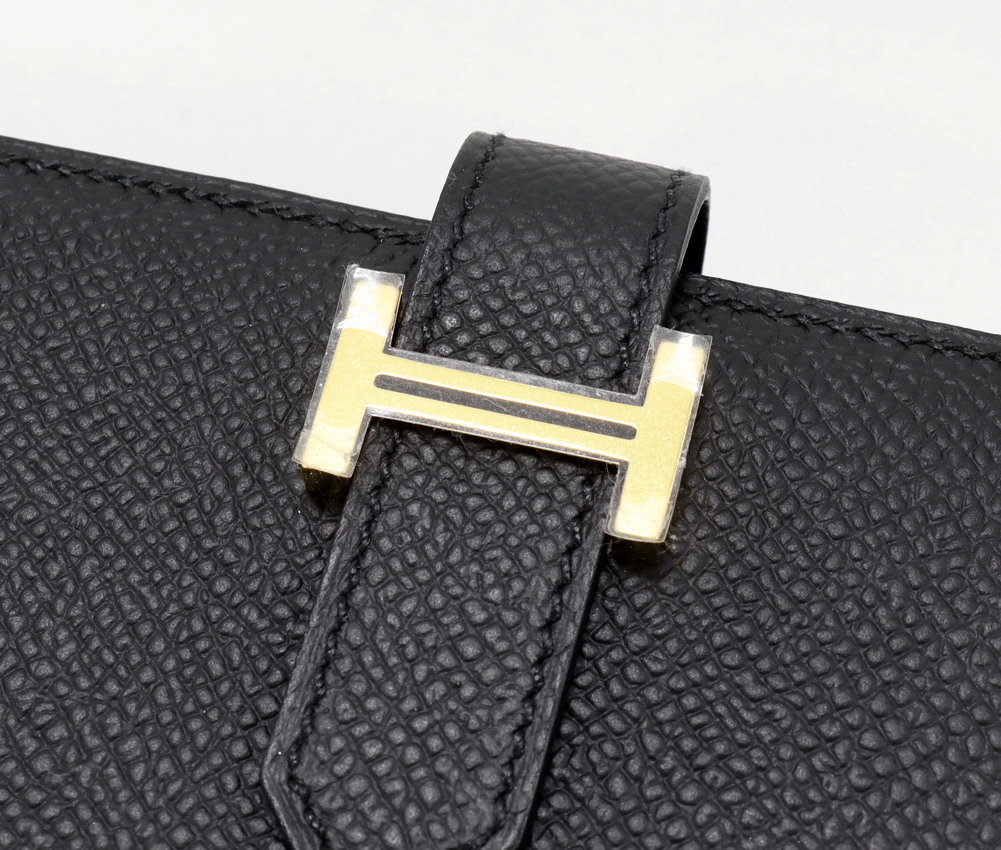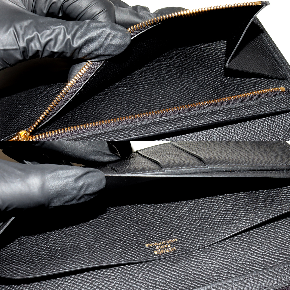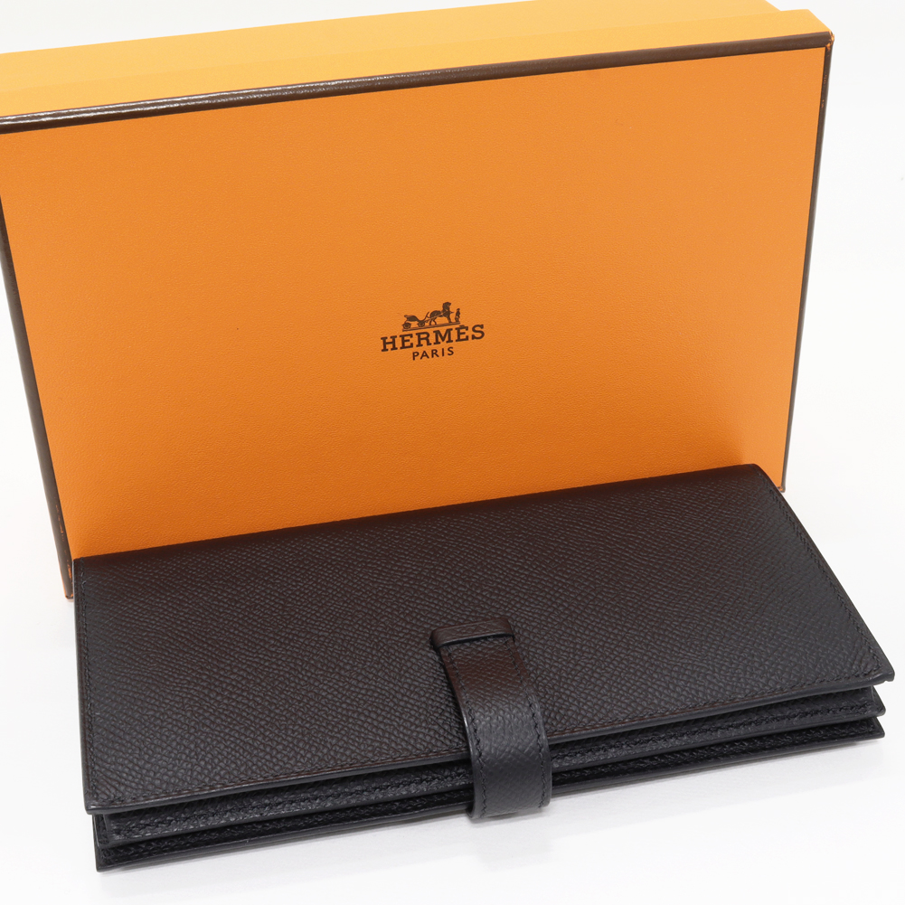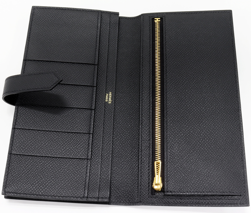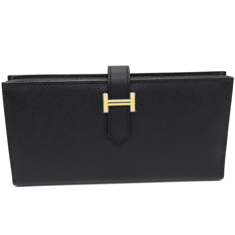 HERMES(エルメス) ベアンスフレ ファスナーサイフ ヴォーエプソン 黒 ゴールド金具 ファスナー長財布(小銭入れあり)