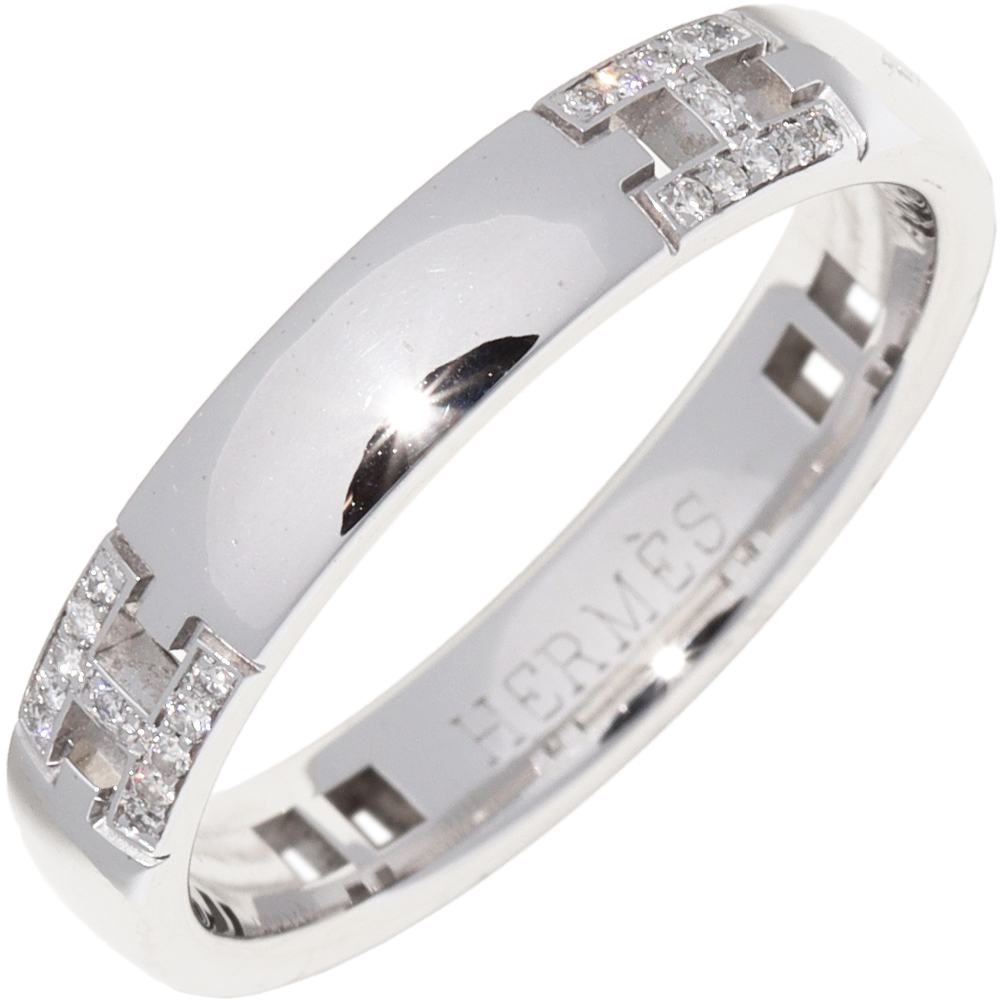 HERMES(エルメス) K18WG ダイヤ44P(0.08ct) ヘラクレスリング ミニ 幅3.6ミリ フルモチーフダイヤ H119855B 00051 #51(10.5号) 指輪