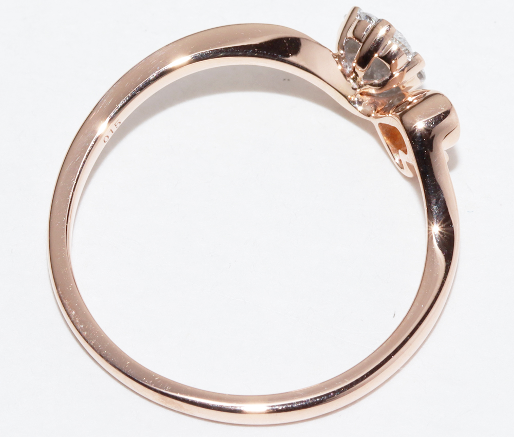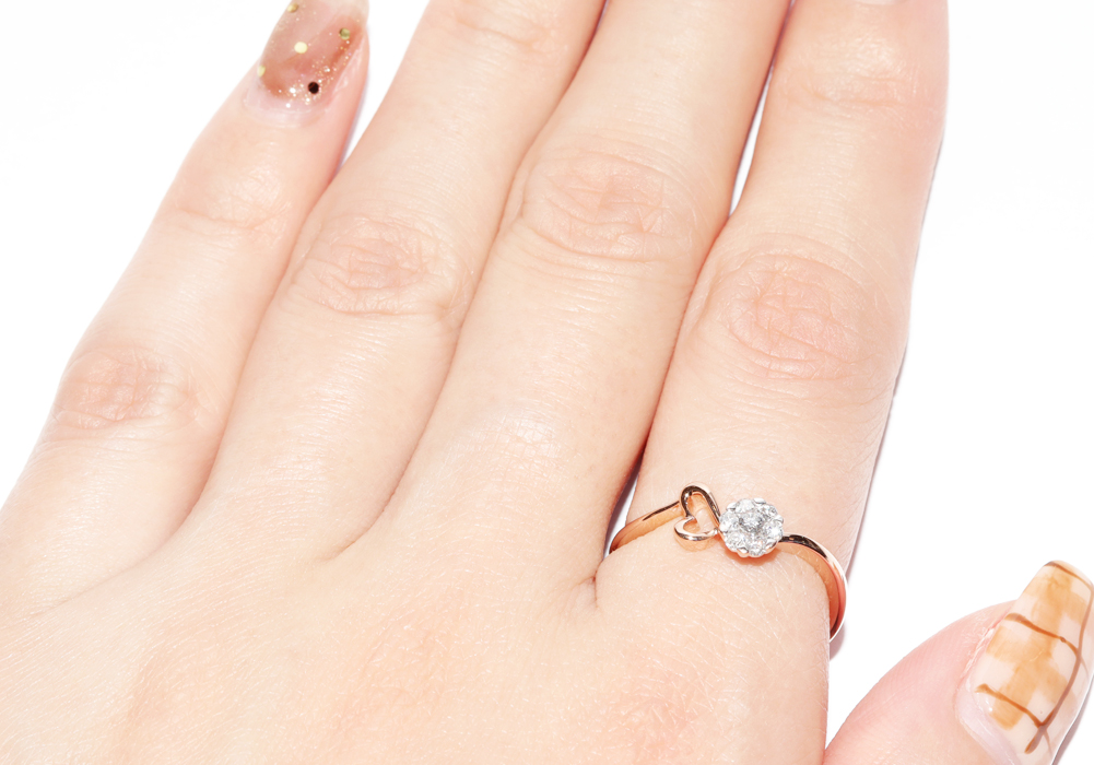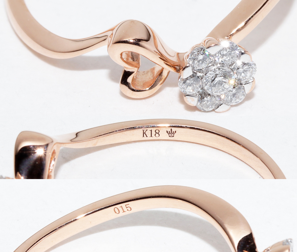 K18PG ダイヤ0.15ct ハート フラワー 花 12号 指輪