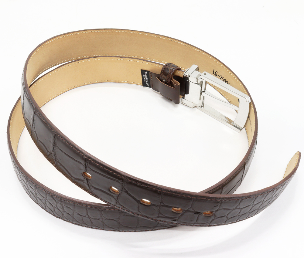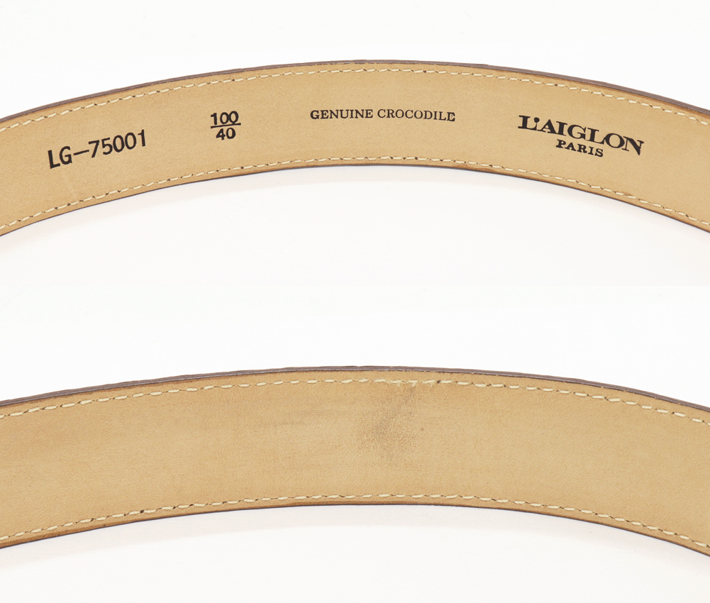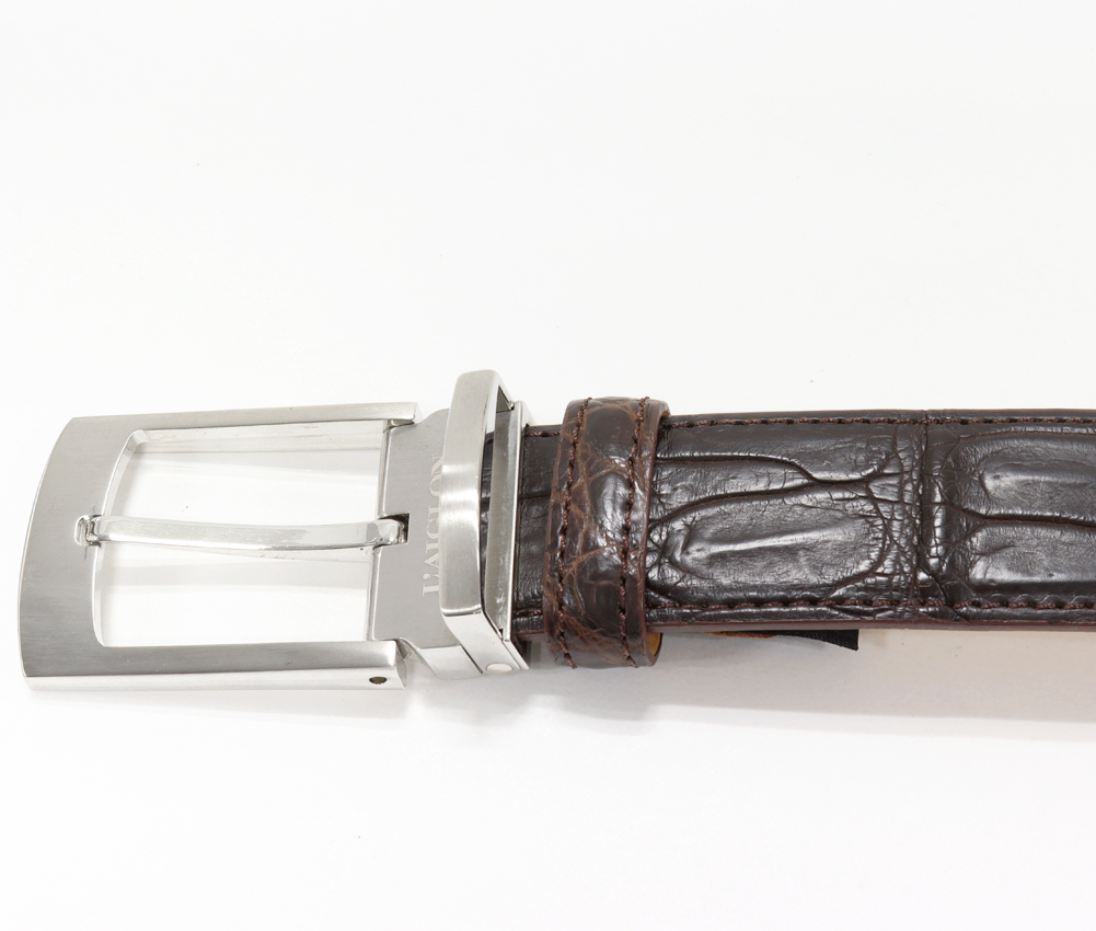 L'AIGLON(レグロン) マット加工クロコダイル 肚ワニ ブラウン SSピンバックル ベルト