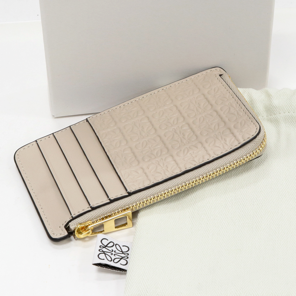 LOEWE(ロエベ) アナグラム リピート コインカードホルダー カーフ ライトオーツ C499Z40X04 カードケース付きコインケース L字ファスナーフラグメントケース