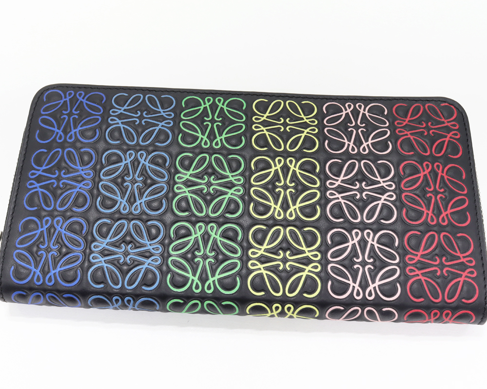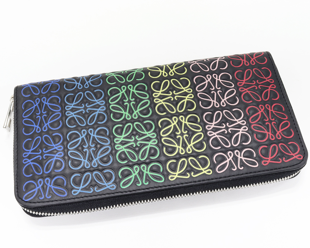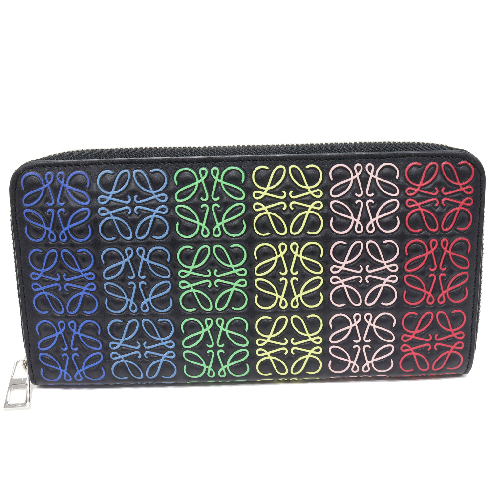 LOEWE(ロエベ) アナグラム リピート カーフ ブラックxレインボーマルチカラー 109.11.T12 ラウンドファスナー長財布(小銭入れあり)