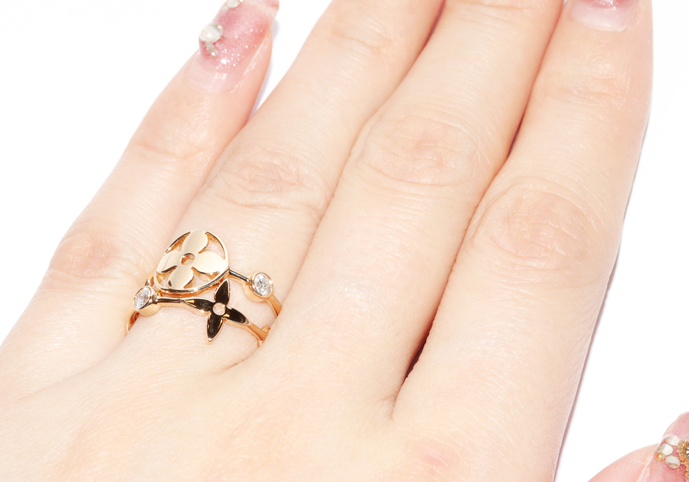 LOUIS VUITTON(ルイ・ヴィトン) K18YG ダイヤ2P バーグ モノグラムスキン リング Q9A72 #49(約9号) 指輪