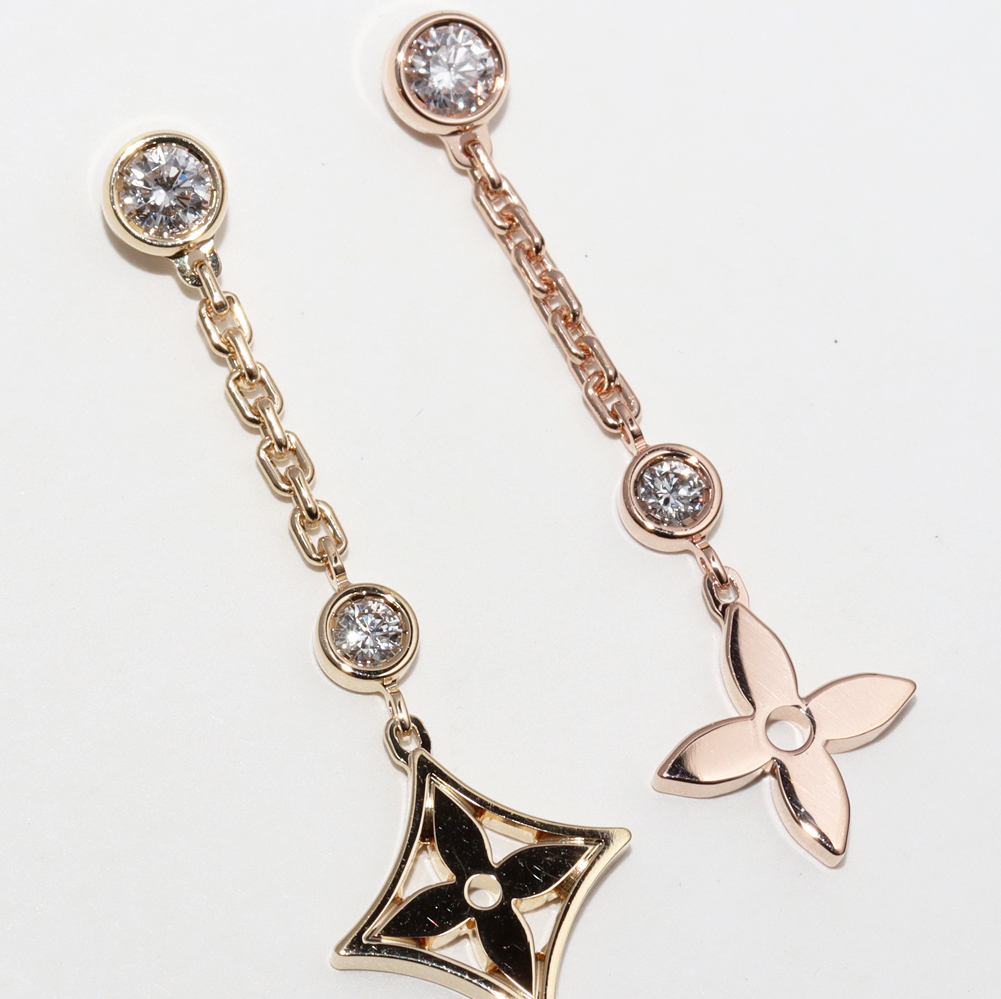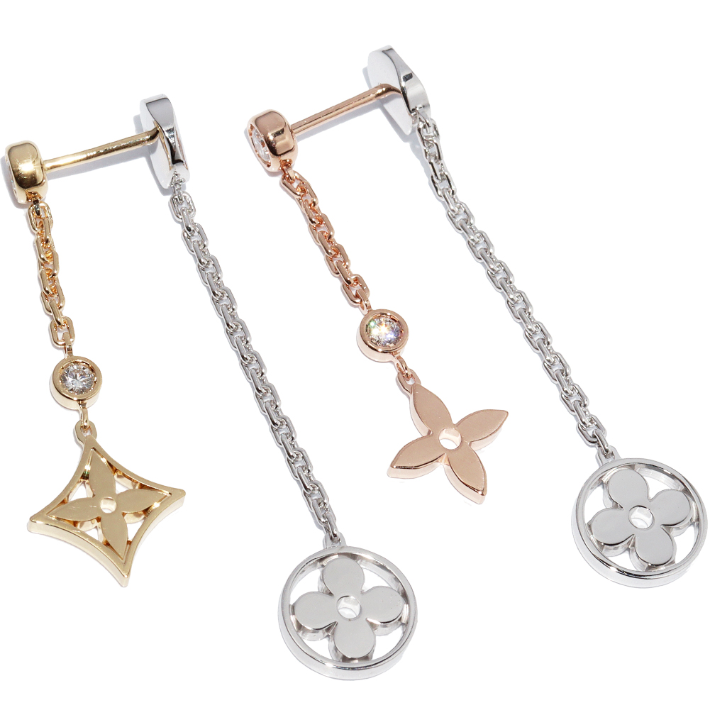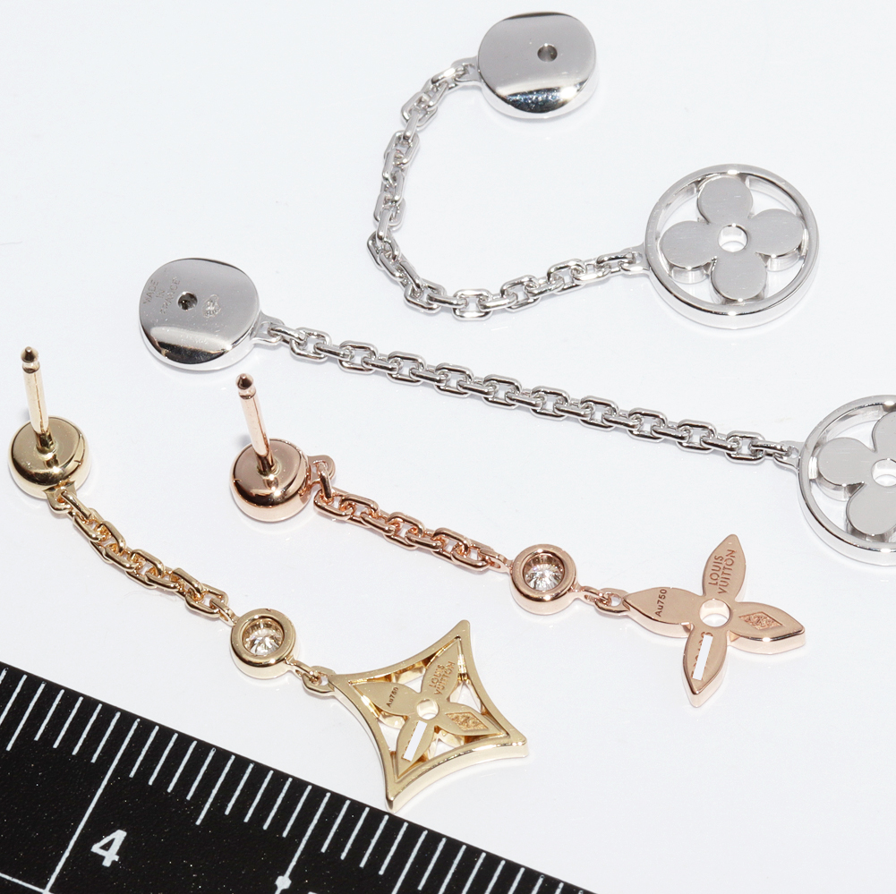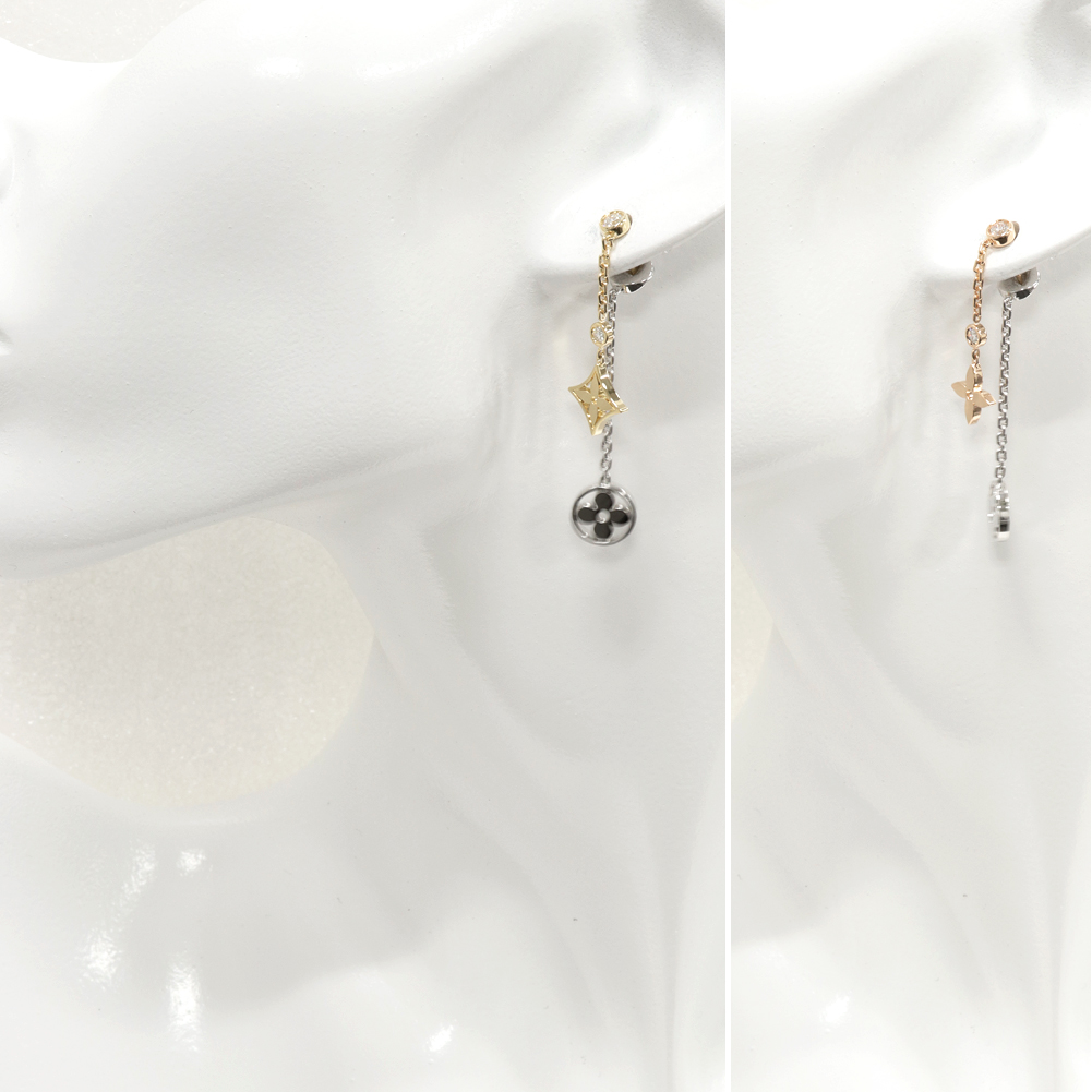 LOUIS VUITTON(ルイ・ヴィトン) K18YG K18PG K18WG ダイヤ4P(約0.2ct) ピアスモノグラム・イディール ダブルチェーン(18Kスリーゴールドxダイヤモンド) Q96413 ピアス