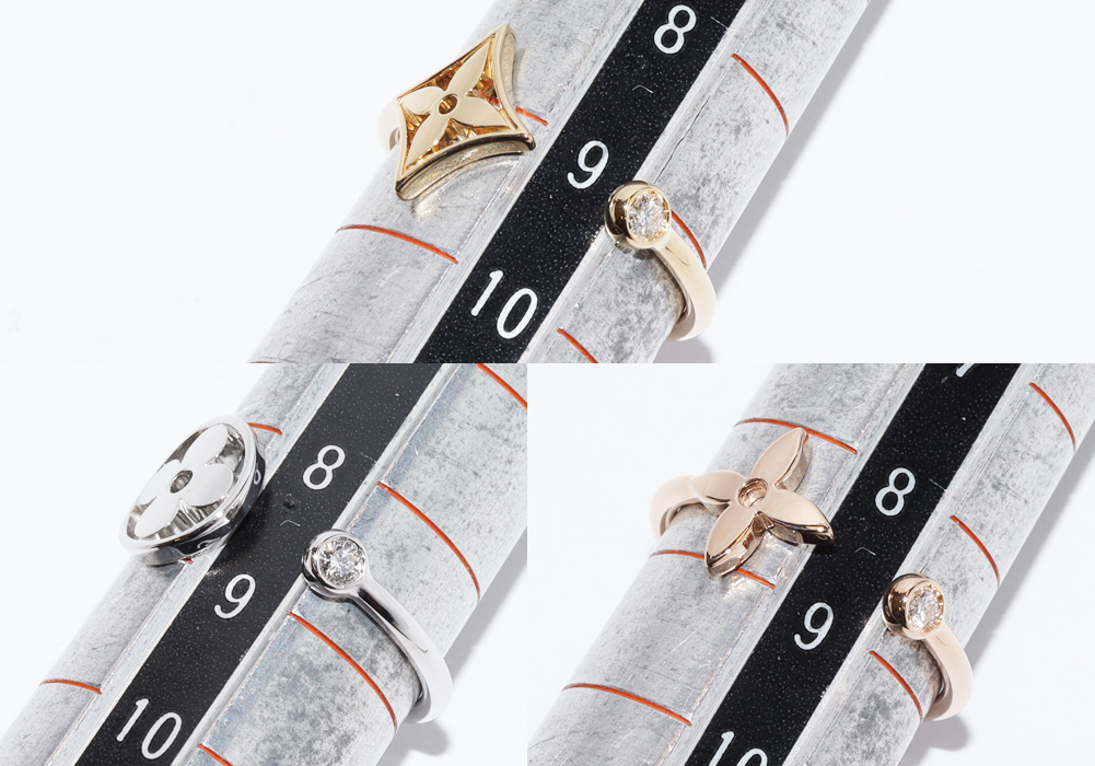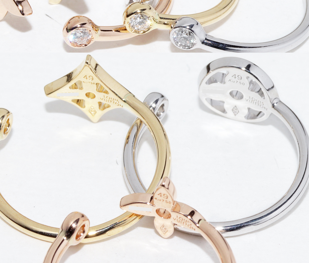 ホーム/ブランドジュエリー/ヴィトン/LOUIS VUITTON(ルイ・ヴィトン) K18YG K18WG K18PG ダイヤ3P(計約0.10ct) リング モノグラム・イディール Q9F15C #49(約8.5号/約9号) 指輪