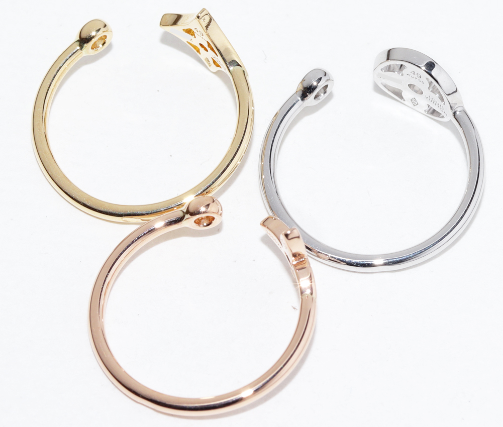 WGとPGリングは約8.5号、YGリングは約9号に近いサイズ感です。