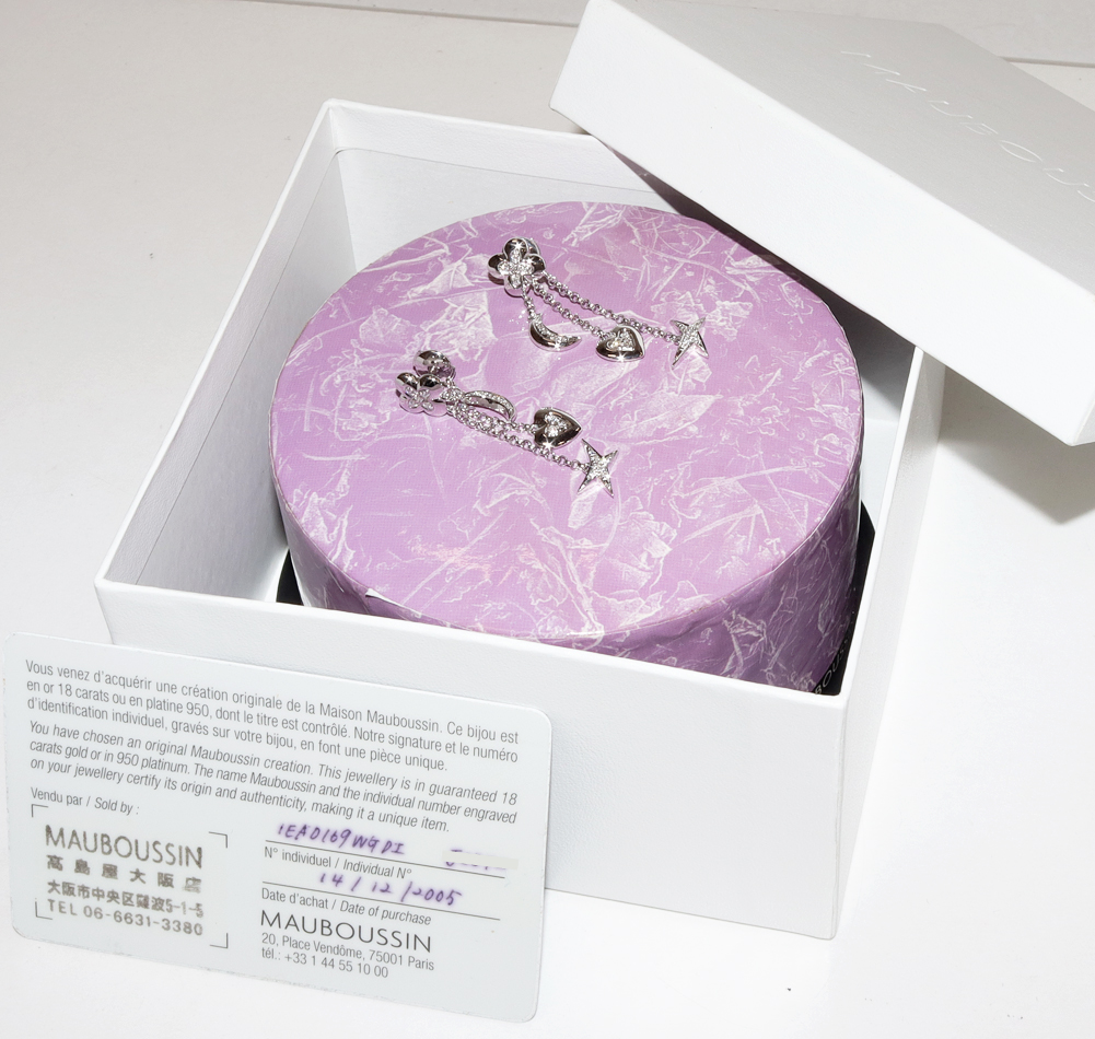 MAUBOUSSIN(モーブッサン) K18WG ダイヤ38P エトワール ムーン ハート チェーン ピアス 1EA0169WGDI ピアス