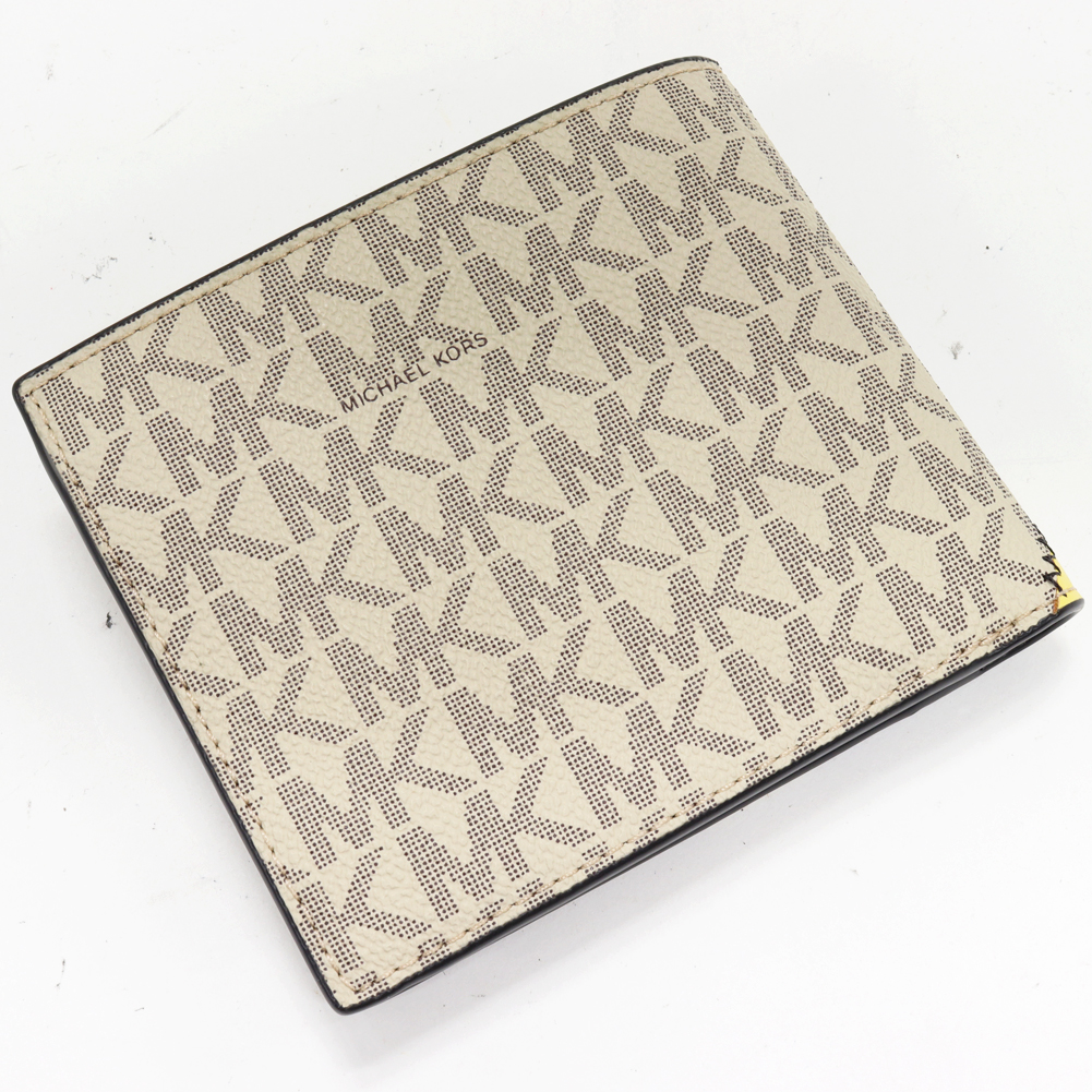 MICHAEL KORS(マイケルコース) クーパー ビルフォールド ウィズ コインポケット PVCキャンバス レザー イエロー(イエローxベージュ) 36R3LCOF3U 二つ折り財布(小銭入れあり)
