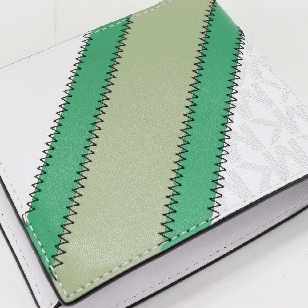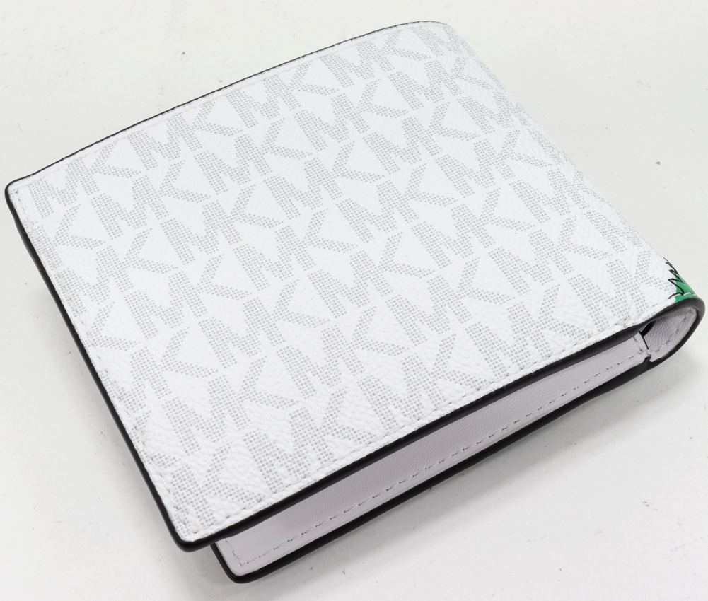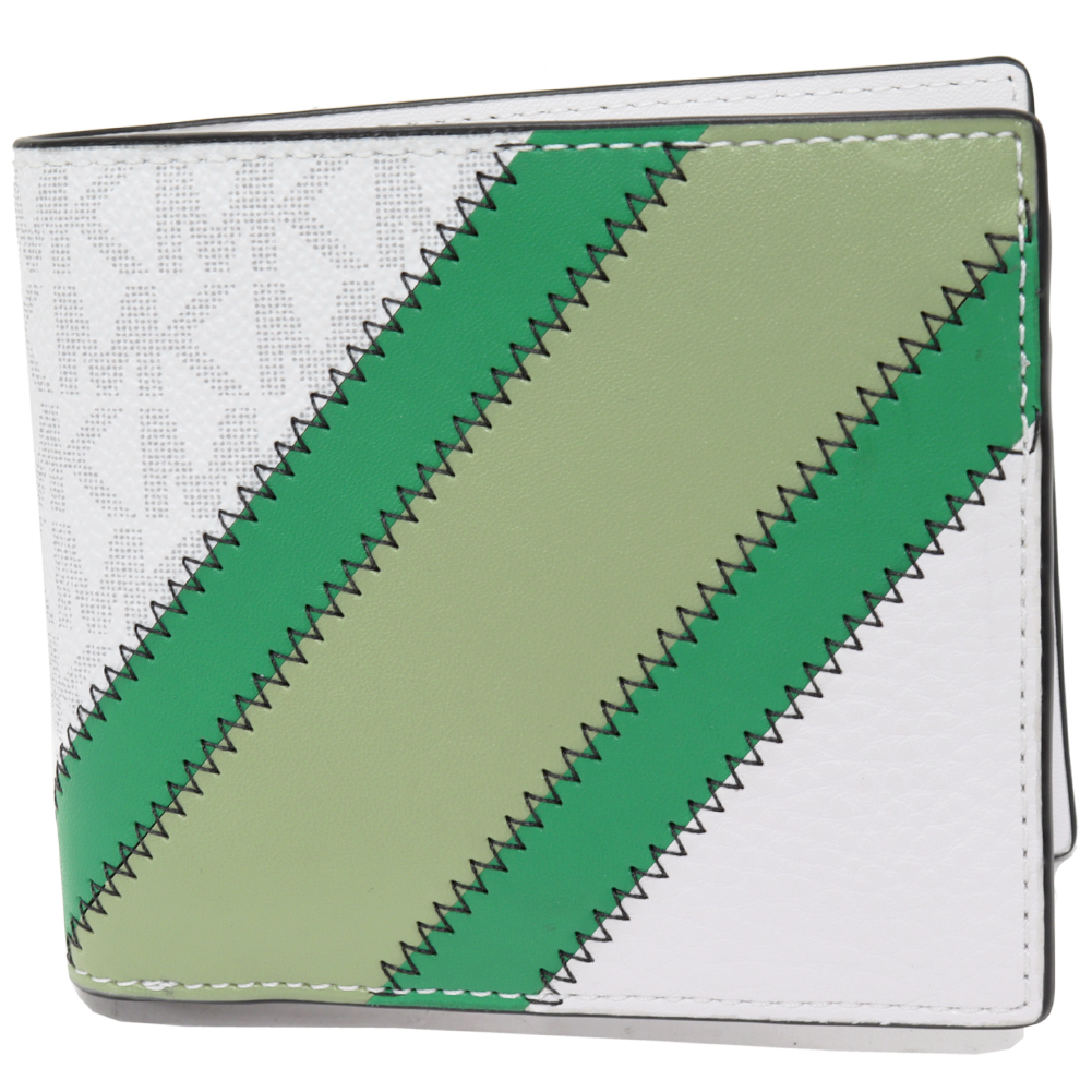 MICHAEL KORS(マイケルコース) クーパー ビルフォールド ウィズ コインポケット PVCキャンバス レザー パーム(グリーンx白) 36R3LCOF3U 二つ折り財布(小銭入れあり)