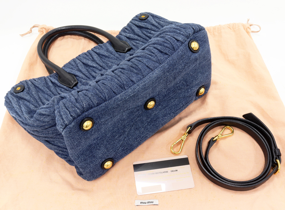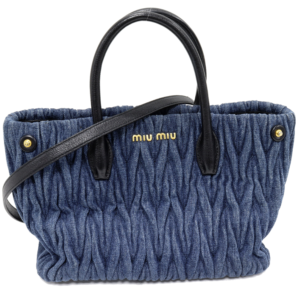 ホーム/バッグ/ミュウミュウ/miumiu(ミュウミュウ) デニム マテラッセ ハンドバッグ デニムキャンバスxゴートレザー ブルーxネロ(黒) 2WAY 5BG069 ハンドバッグ ショルダーバッグ