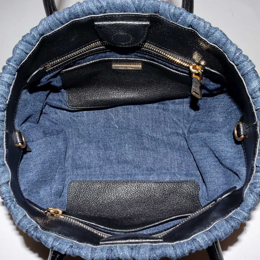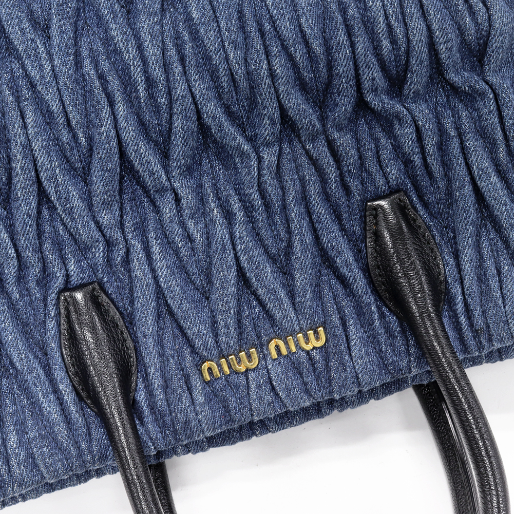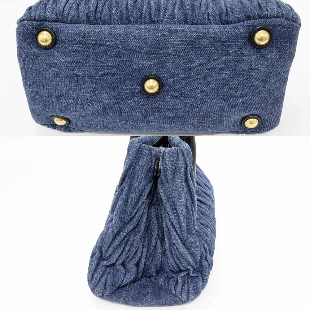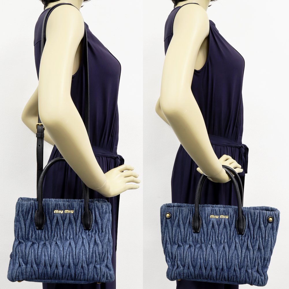 miumiu(ミュウミュウ) デニム マテラッセ ハンドバッグ デニムキャンバスxゴートレザー ブルーxネロ(黒) 2WAY 5BG069 ハンドバッグ ショルダーバッグ