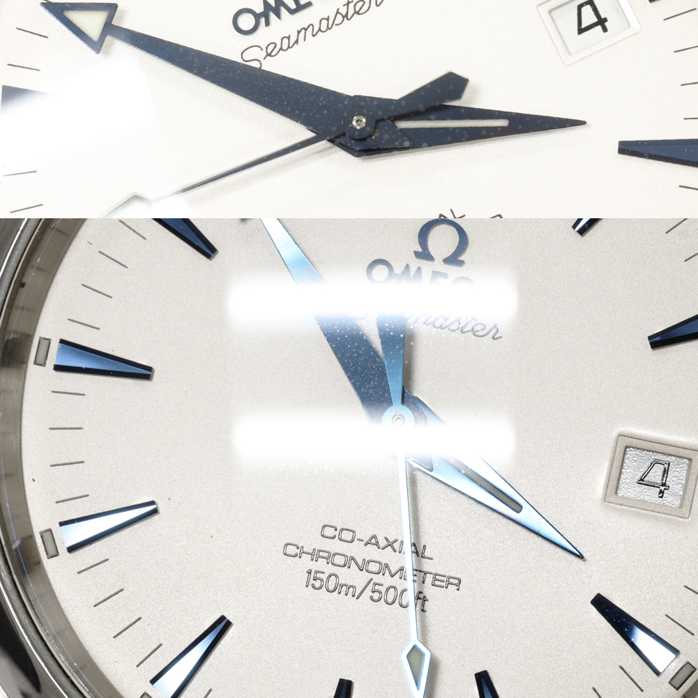 - 針にサビ汚れ、ガラス内側に水滴汚れ、文字盤に微細な汚れ、その他全体的に小キズがありますが、大きく目立つダメージではなく、綺麗な状態です。