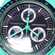 ターコイズxネイビーのケースに星空のような文字盤が輝きます。
