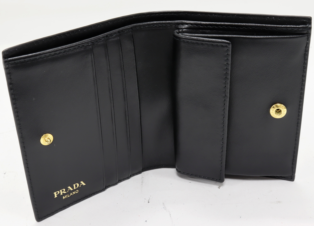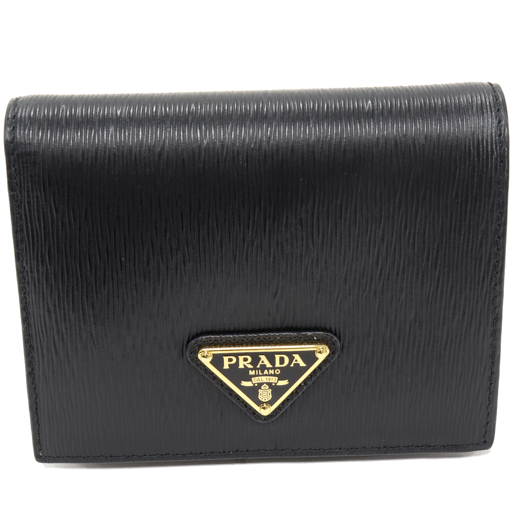 PRADA(プラダ) ヴィッテロムーブ トライアングル コンパクトウォレット カーフ ネロ(黒) ゴールド金具 1MV204 二つ折り財布(小銭入れあり)