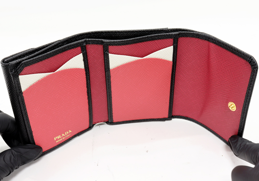 PRADA(プラダ) サフィアーノ マルチカラー コンパクトウォレット サフィアーノレザー ネロ(黒)xピンク 1MH043_ZLP_F061H 三つ折り財布(小銭入れあり)