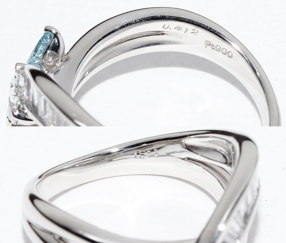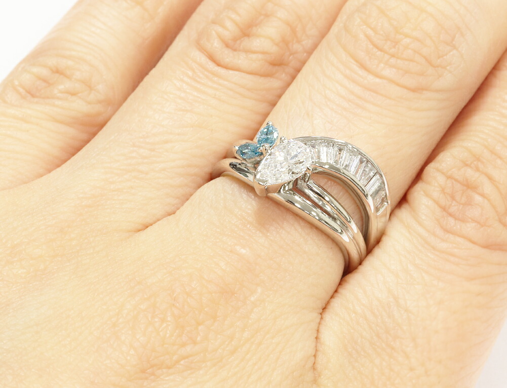 - マーキスカットダイヤ0.412ct ブルーダイヤxダイヤ0.48ctPt900(プラチナ)