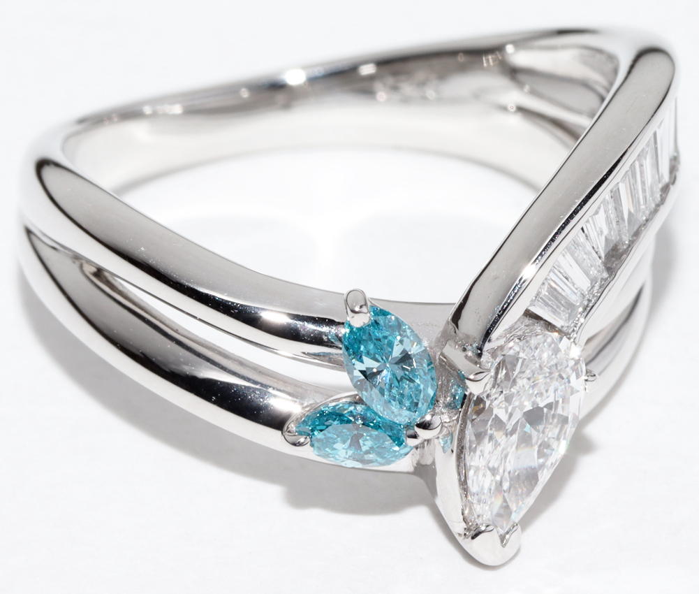 ホーム/たかみの宝石箱/指輪/Pt900 マーキスカットダイヤ0.412ct ブルーダイヤxダイヤ0.48ct 指輪(リング)