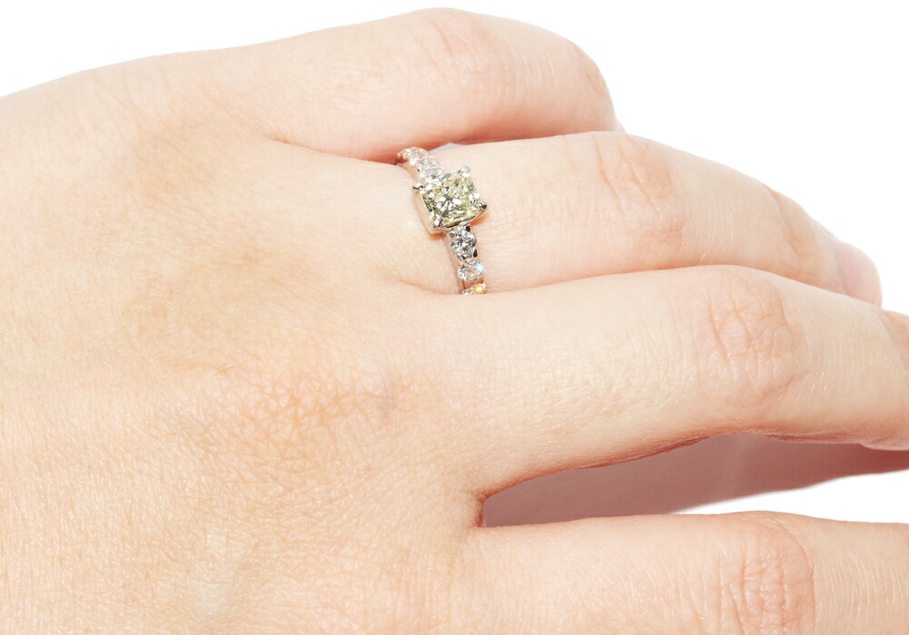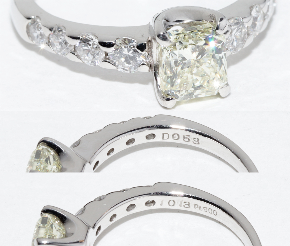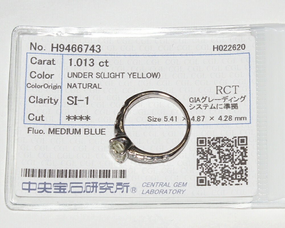 - ダイヤ1.013ct(LIGHTYELLOW-SI1-MEDIUMBLUE) ダイヤ0.52ctPt900(プラチナ)
