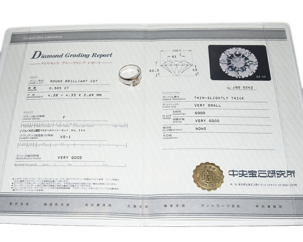 - 当店BOXもしくは布袋/中央宝石研究所鑑定書