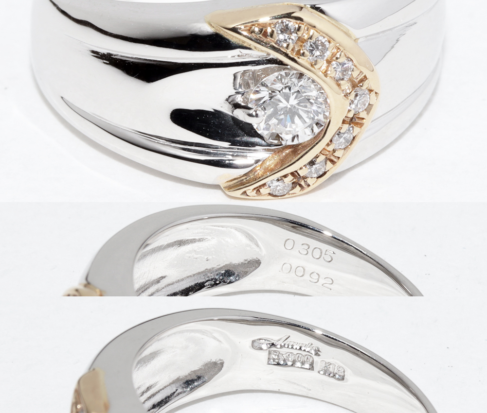 ホーム/たかみの宝石箱/指輪/Pt900 K18YG ダイヤ0.305ct(F-VS1-VERYGOOD-NONE) ダイヤ0.092ct 19号 指輪