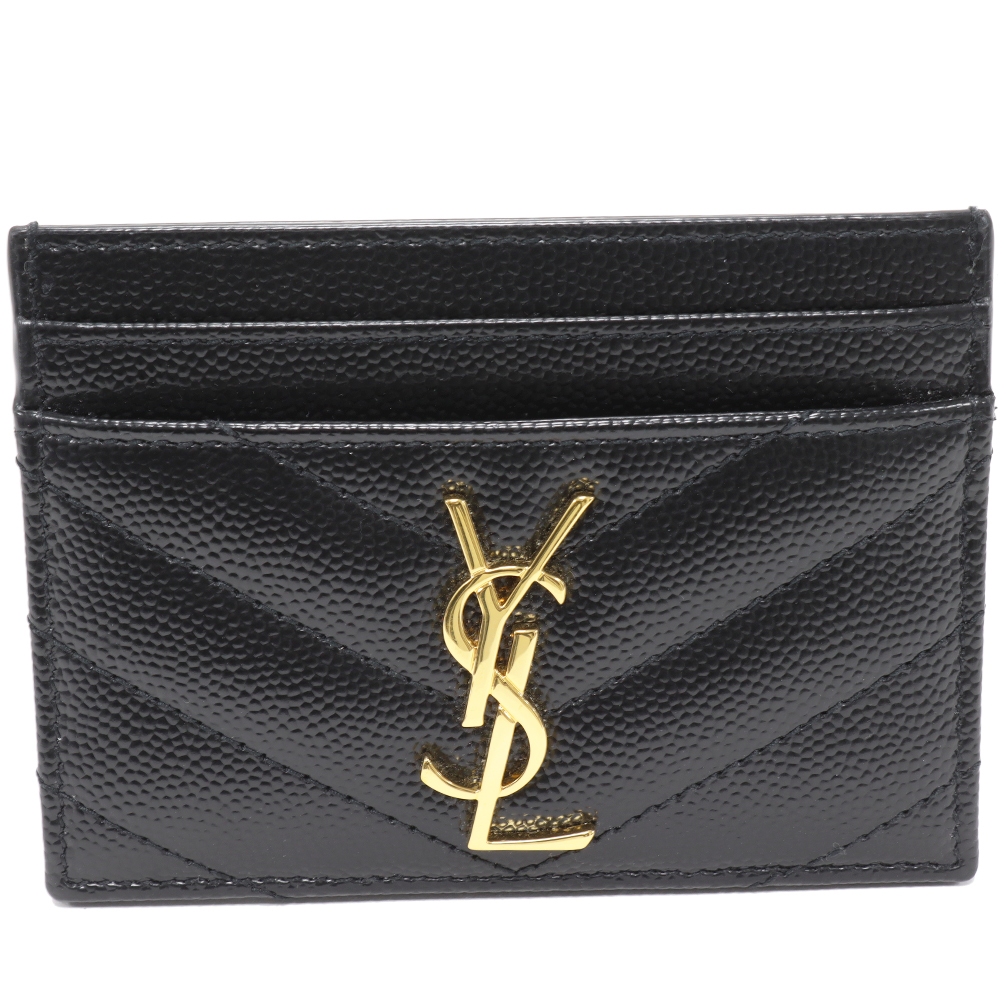 SAINT LAURENT PARIS(サンローランパリ) モノグラム カードケース エンボスカーフレザー 黒 アンティークゴールド金具 423291 BOW01 1000 カードケース パスケース