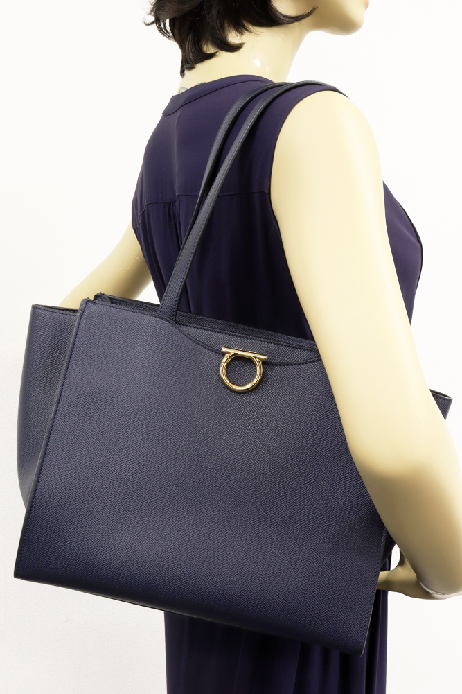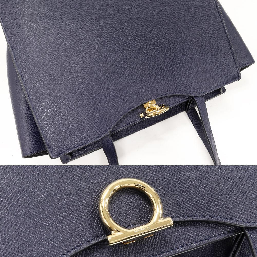 Salvatore Ferragamo(サルヴァトーレ・フェラガモ) ガンチーニ トートバッグ カーフ ネイビー 213935 トートバッグ