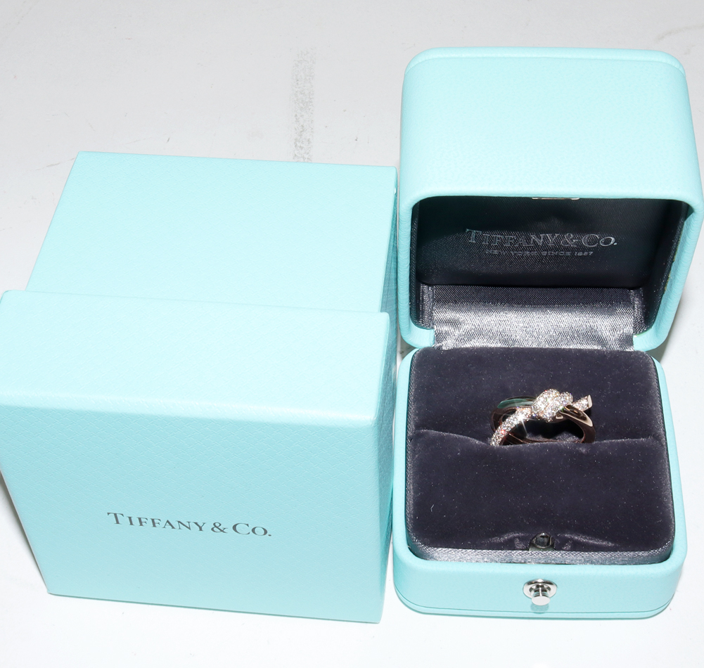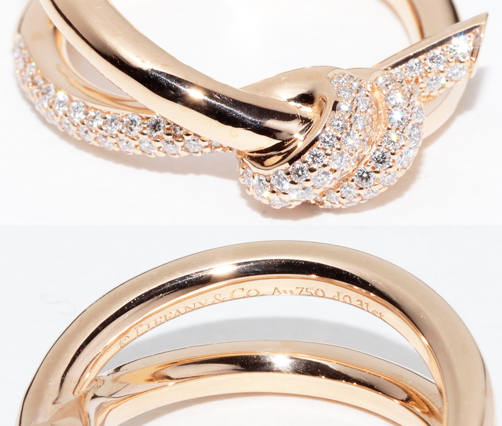 Tiffany & Co.(ティファニー) K18PG ダイヤ0.31ct ノット ダブルロウリング 約11.5号 指輪