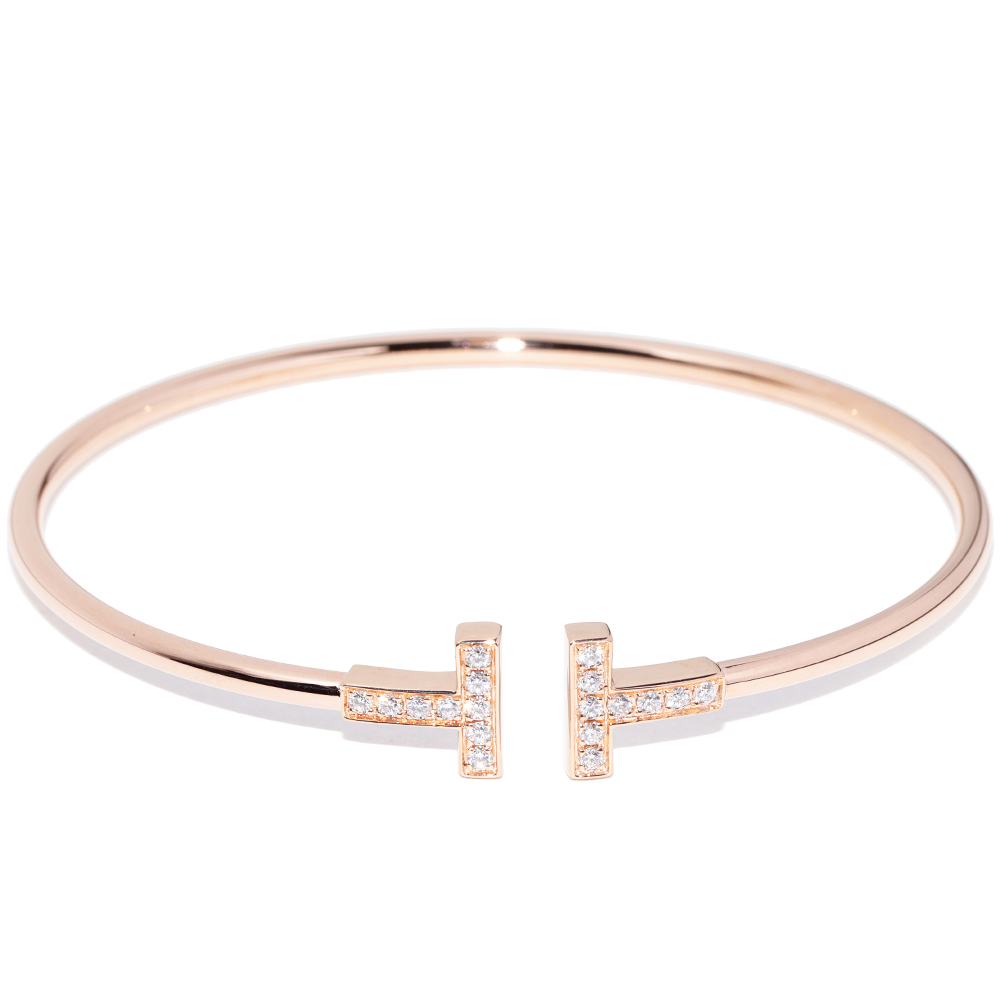 Tiffany & Co.(ティファニー) K18PG ダイヤ18P(計0.24ct) Tワイヤー ブレスレット ラージ ブレスレット バングル