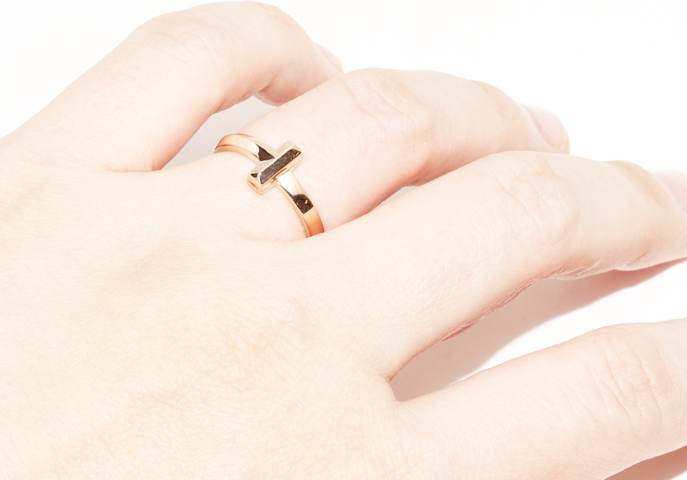 Tiffany & Co.(ティファニー) K18PG Tワン ナロー リング 幅2.4ミリ 約6.5号 指輪