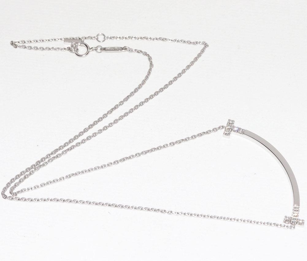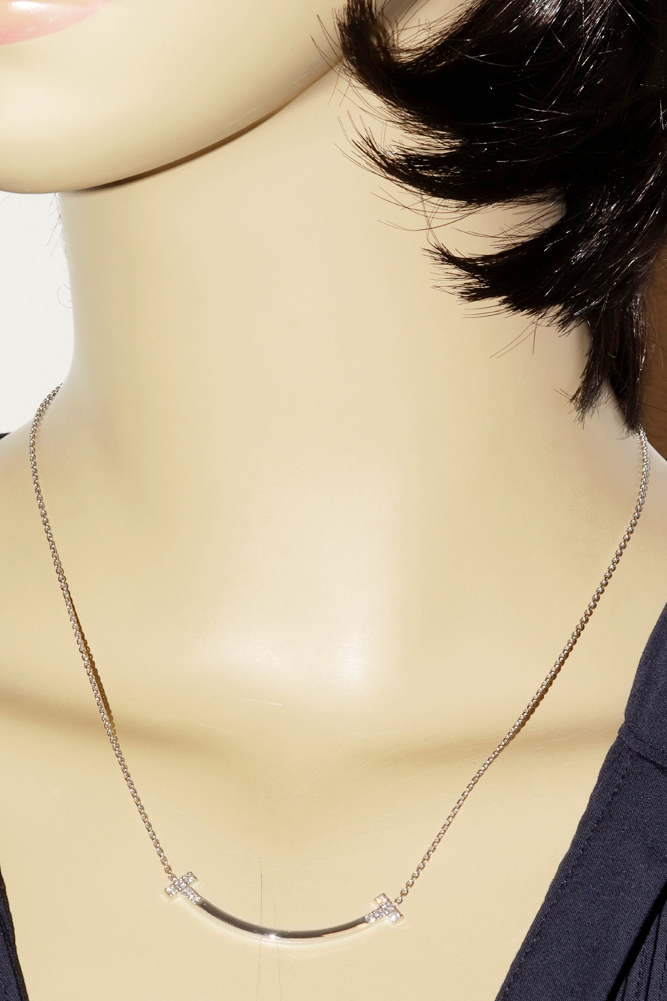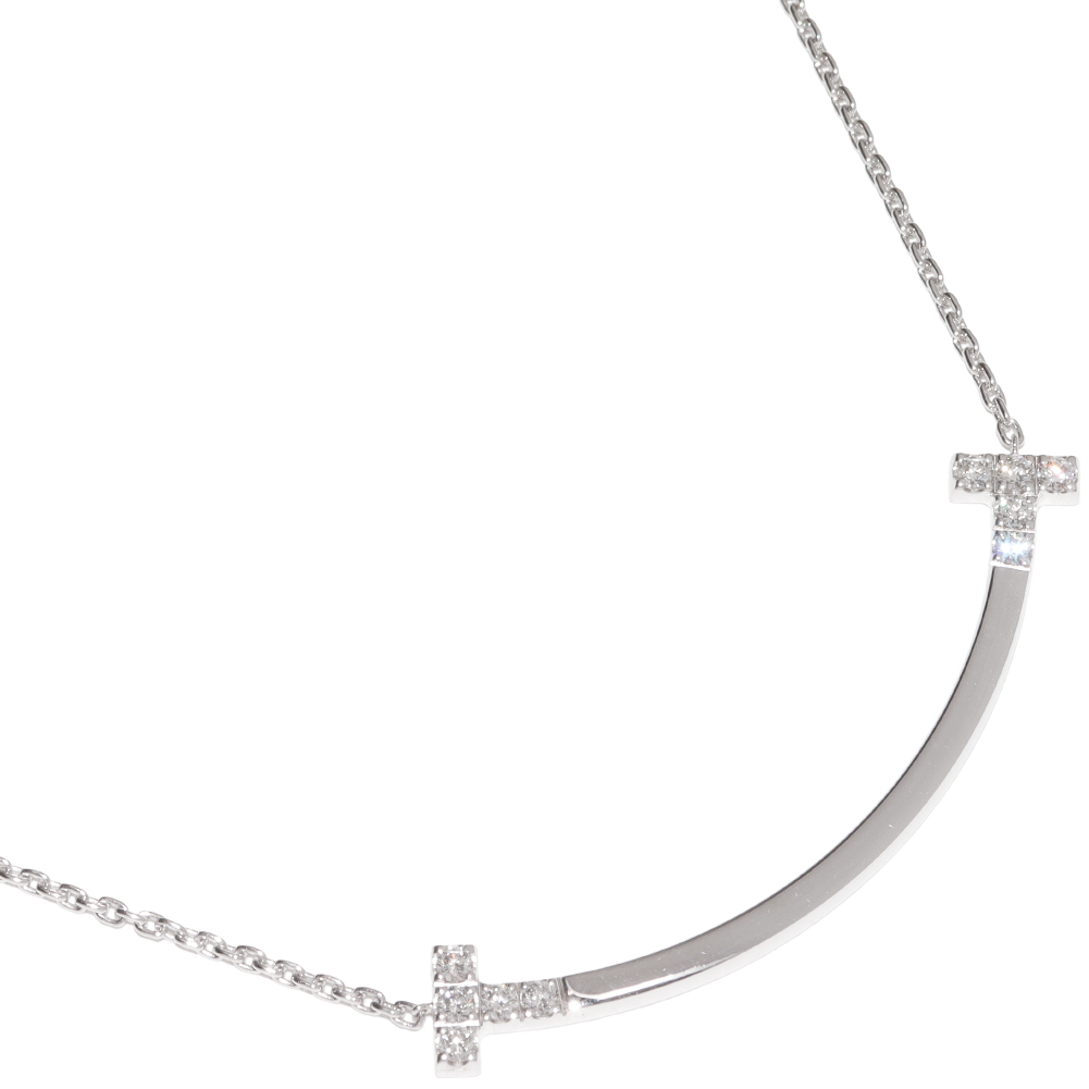 Tiffany & Co.(ティファニー) K18WG ダイヤ10P(0.19ct) Tスマイル ペンダントネックレス ミディアム ペンダントネックレス