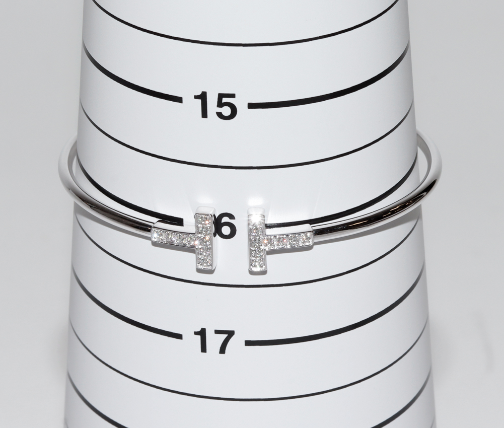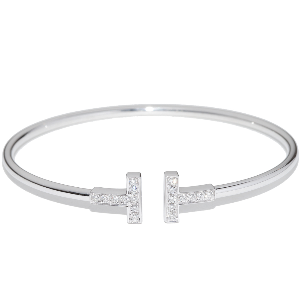 Tiffany & Co.(ティファニー) K18WG ダイヤ18P(計0.24ct) Tワイヤー ブレスレット ミディアム ブレスレット バングル