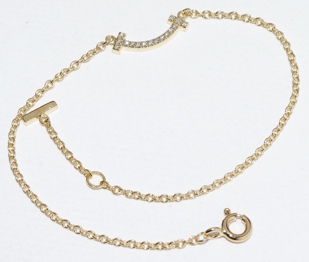 Tiffany & Co.(ティファニー) K18YG ダイヤ0.0.4ct Tスマイル ブレスレット ミニ ミディアム ブレスレット