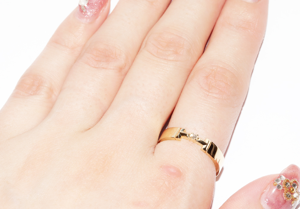 Tiffany & Co.(ティファニー) K18YG ダイヤ1P Tトゥルーリング 幅4ミリ 約13.5号 指輪