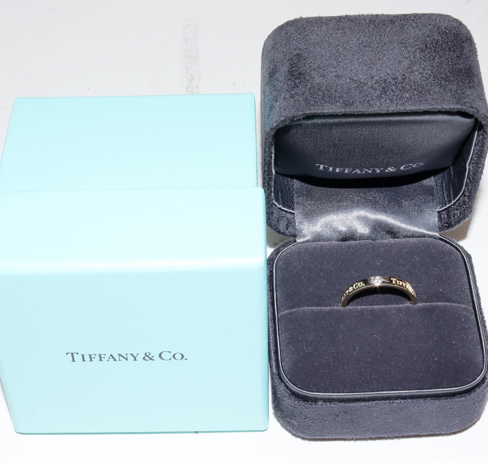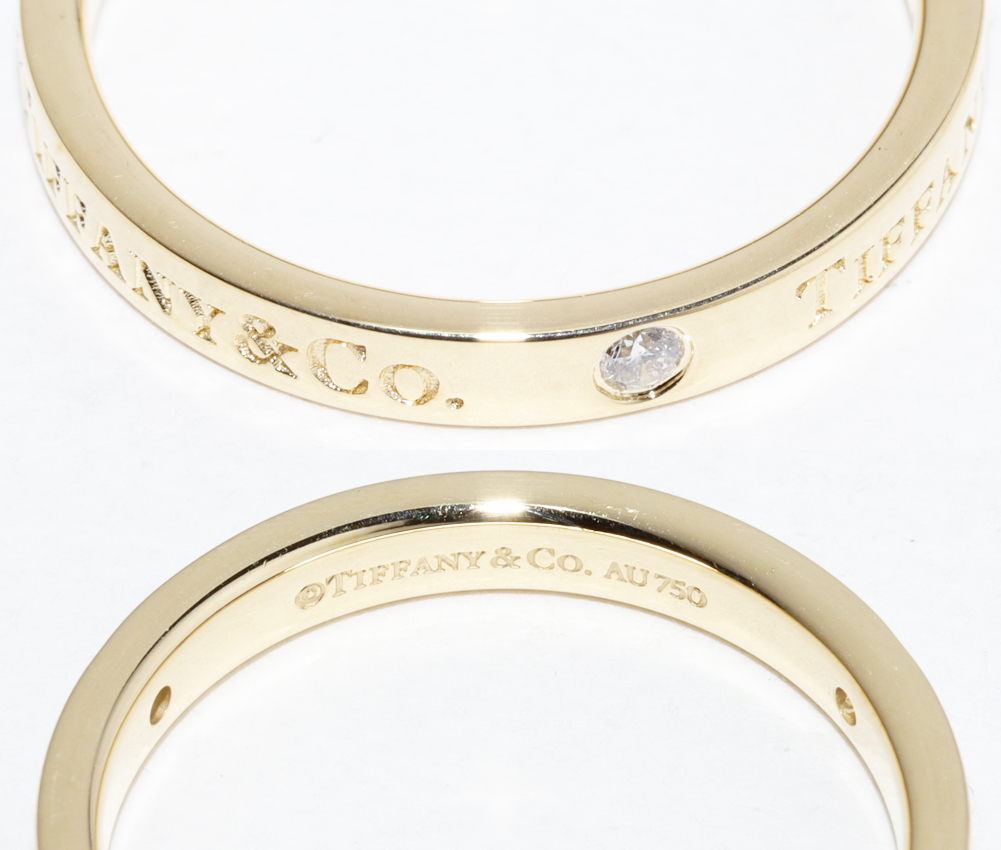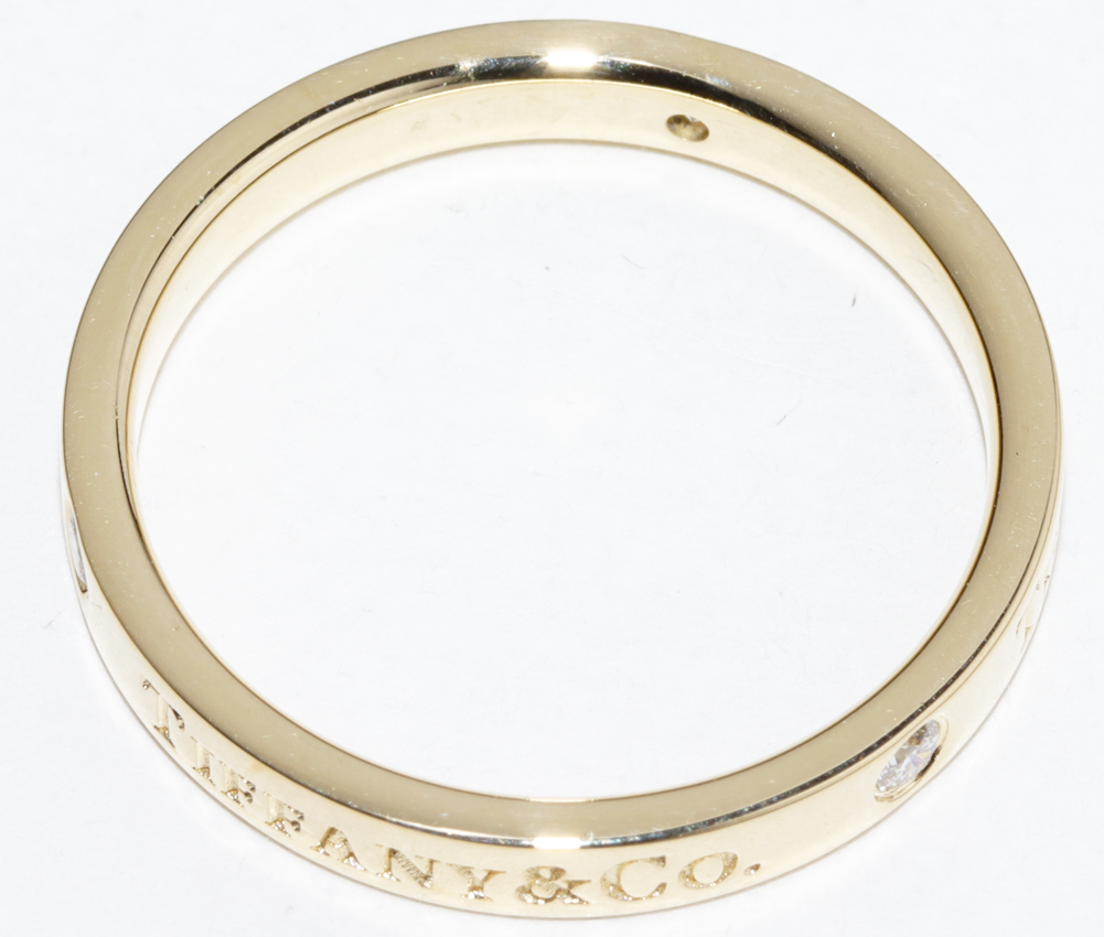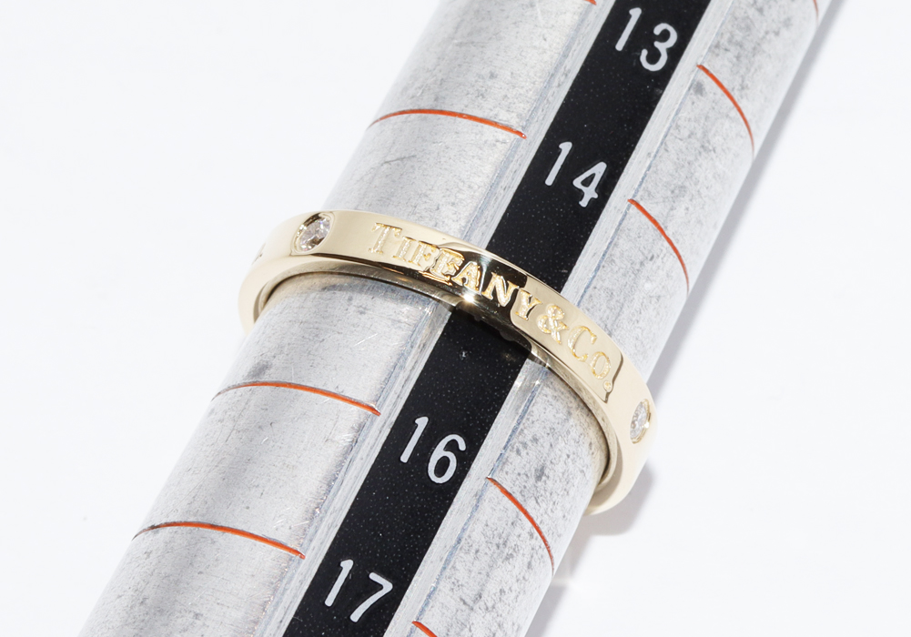 Tiffany & Co.(ティファニー) K18YG ダイヤ3P(計0.07ct) T&CO. フラットバンドリング 幅3ミリ 15号 指輪