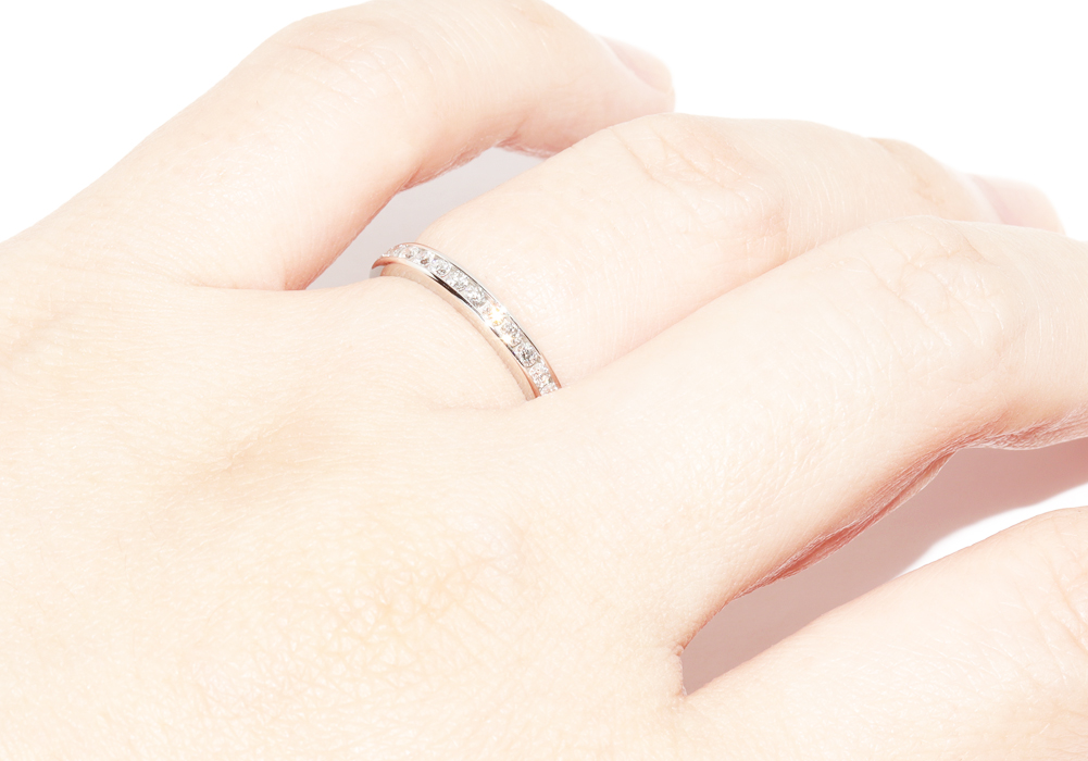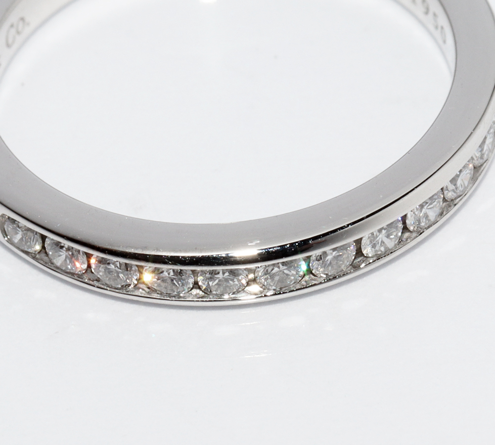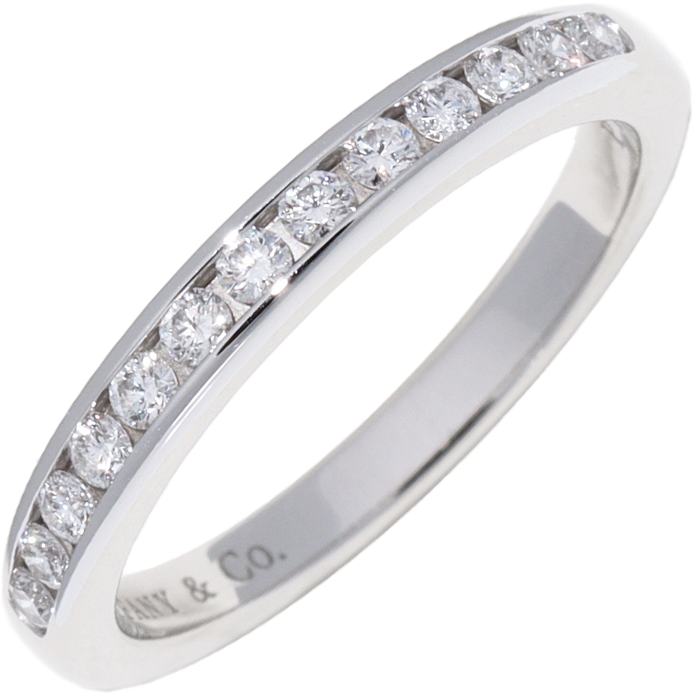 Tiffany & Co.(ティファニー) Pt950 ダイヤ13P ハーフサークル チャネルセッティング バンドリング 幅2.5ミリ 約7.5号 指輪