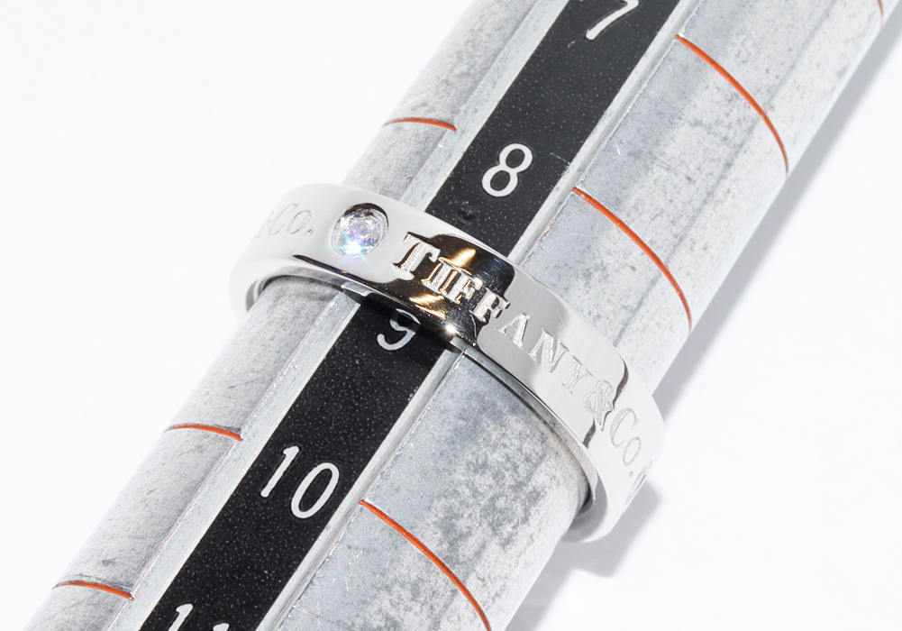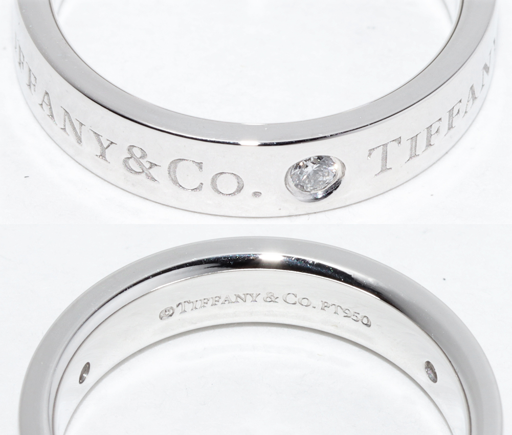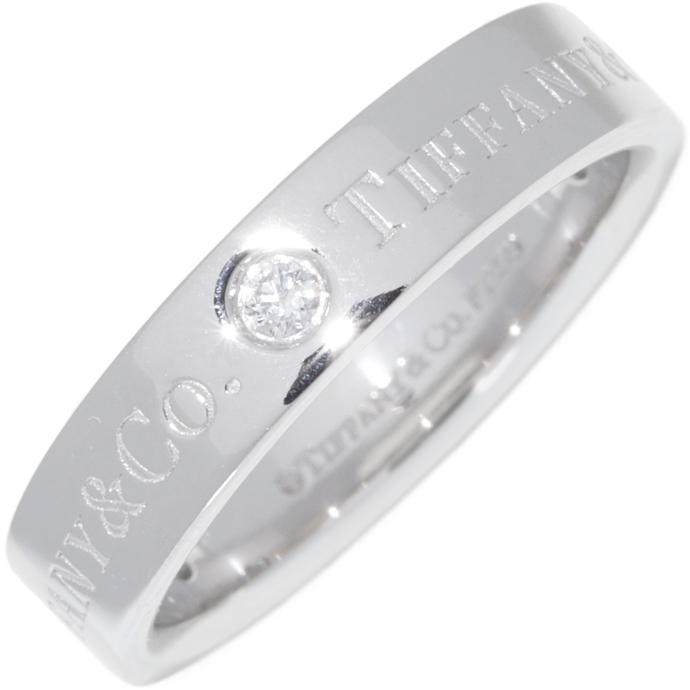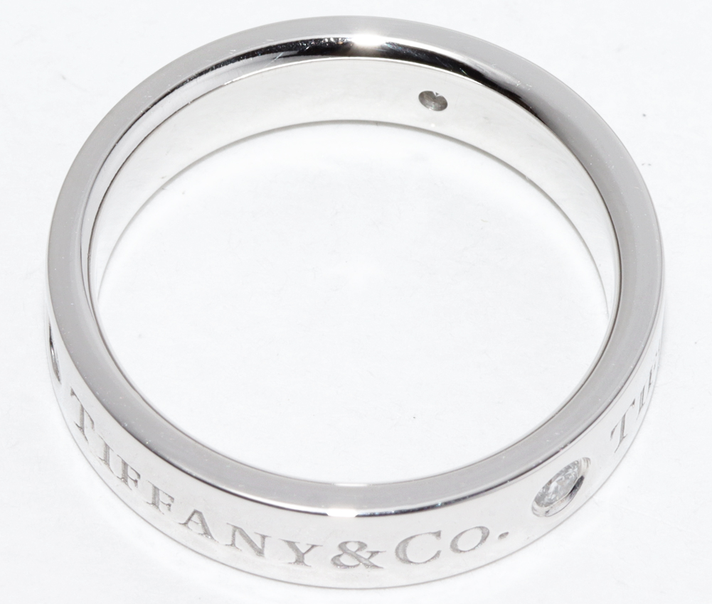 Tiffany & Co.(ティファニー) Pt950 ダイヤ3P T&CO. フラットバンドリング 幅4ミリ 9号 指輪