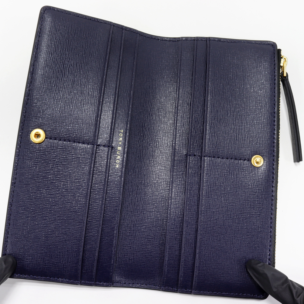 ホーム/財布/その他のブランド/Tory Burch(トリーバーチ) ロビンソン ジップ スリムウォレット レザー 黒xネイビー 87161-0322 ファスナー長財布(小銭入れあり)