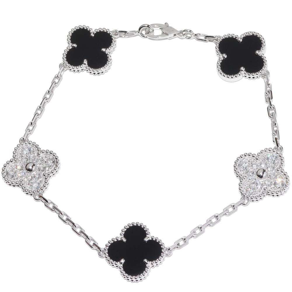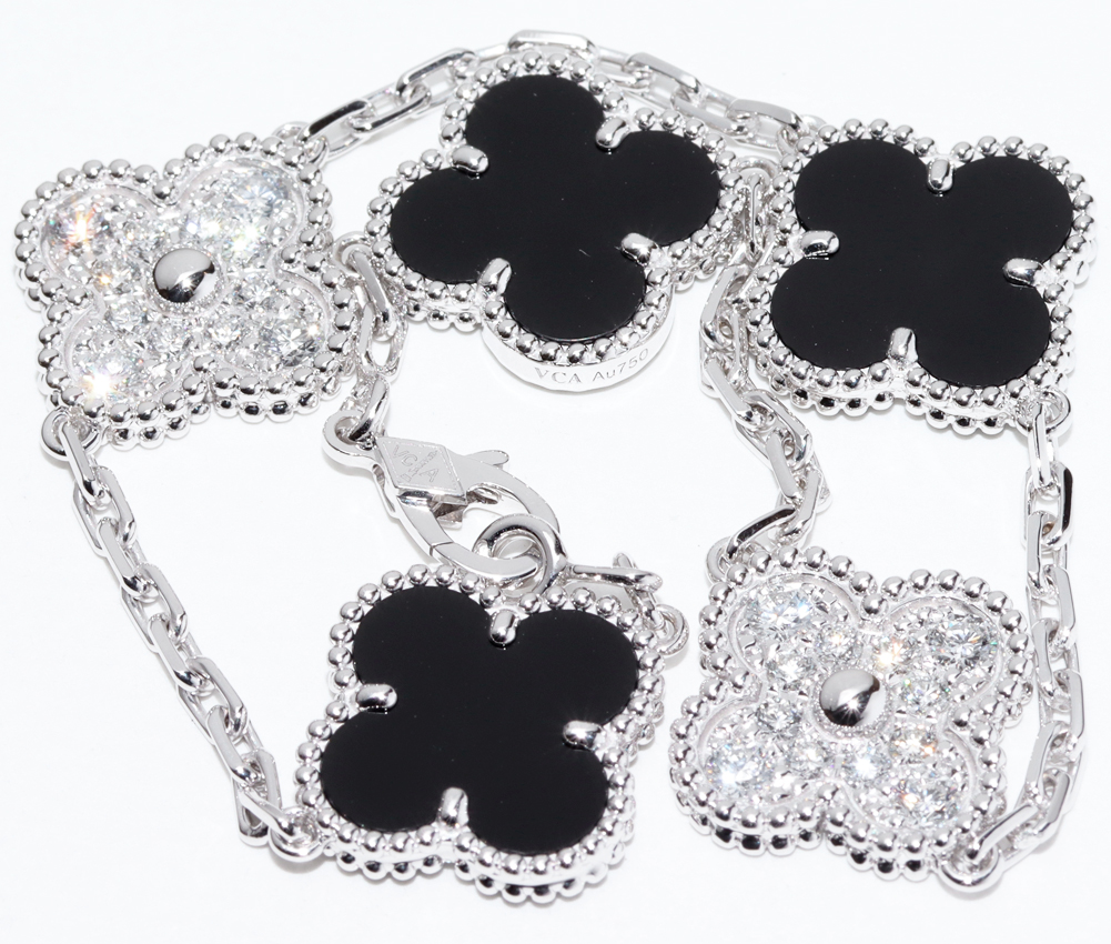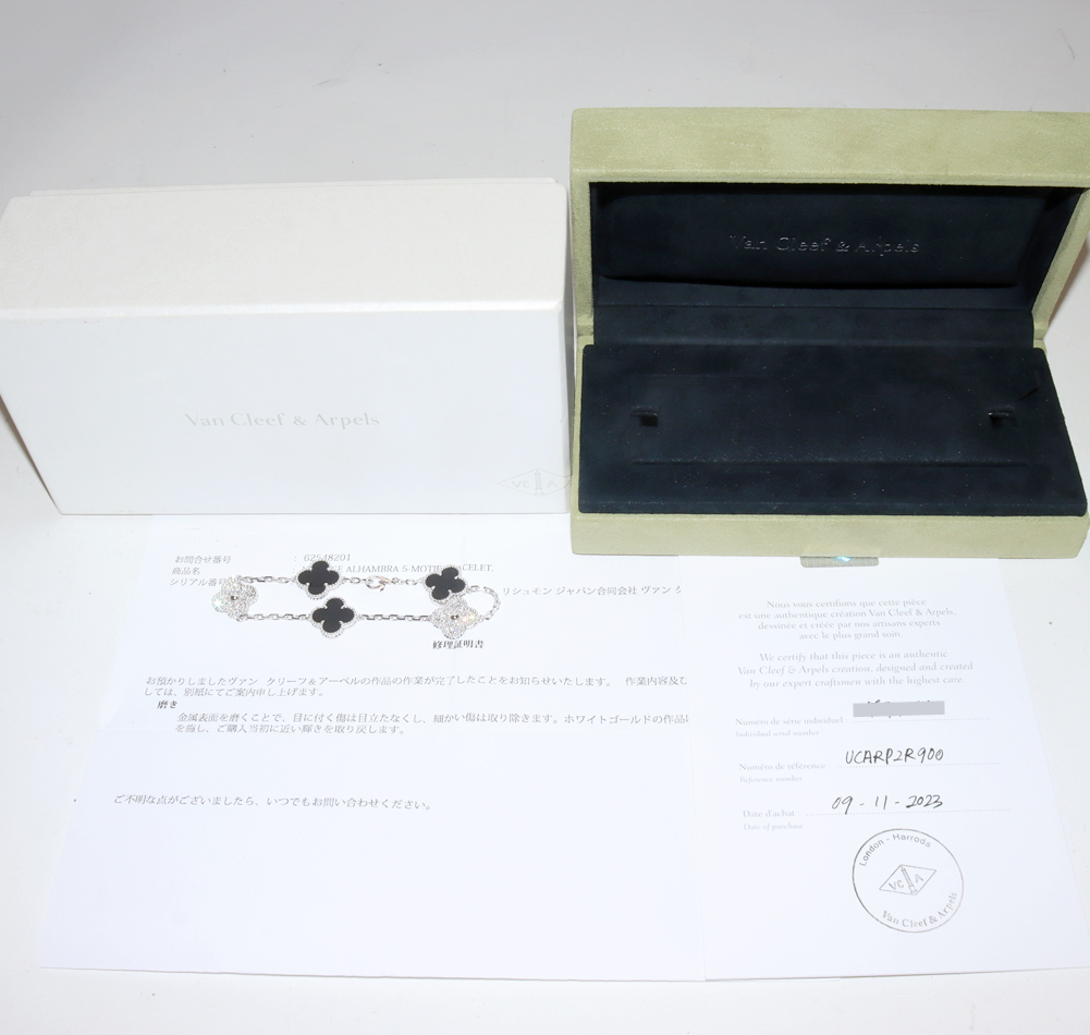 Van Cleef & Arpels(ヴァンクリーフ&アーペル) K18WG オニキス3P ダイヤ24P(計0.96ct) ヴィンテージアルハンブラ ブレスレット 5モチーフ VCARP2R900 ブレスレット